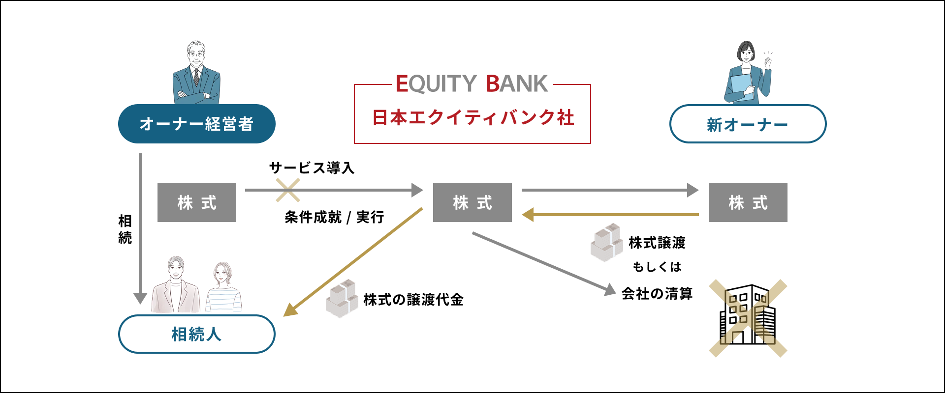 会社の株式は当社が引き受け、現金・現物など各資産に換価いたします。買い手が見つからず、会社の行く末が宙に浮くリスクがございません。